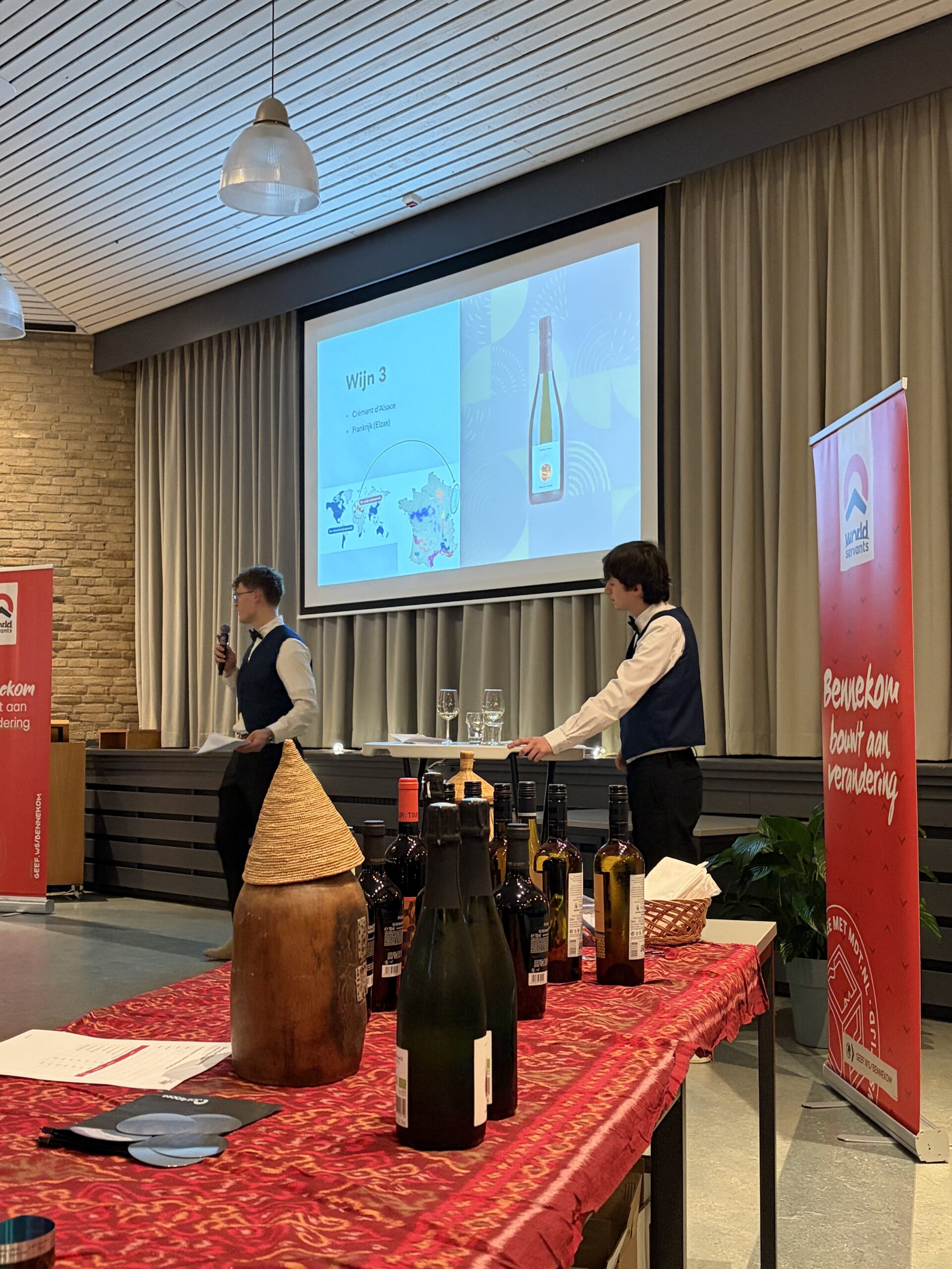 De wijnproeverij van vrijdag 27 februari jl. was een prachtig succes! Onder de deskundige en gepassioneerde uitleg van enkele World Servants genoten bijna 60 deelnemers van een gevarieerd programma rondom wijn & spijs.